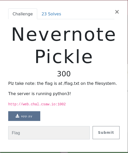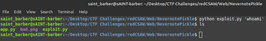 Basically our Note object will be instantiated, and the file name will be the hash it creates + .png at the end. Then our object hits the save_note() function which saves it TWICE, once with a .pickle extension and the it saves only the image with the .png extension. Meaning our images goes through the unpickle function as is, we can have the server unpickle whatever we want! Meaning we can pickle commands and have them executed on the server.